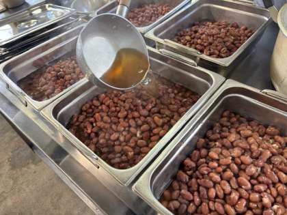 金時豆のあま煮は、釜でふっくらやわらかくしてから、スチームコンベクションオーブンでじっくり味付けして仕上げました。やさしい甘さで、箸休めになりましたね。