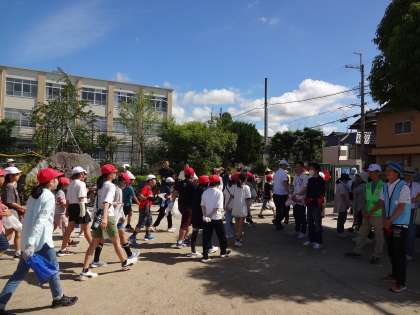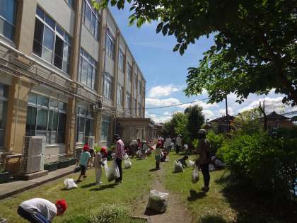 1〜4年生は学校の敷地内や学校周辺の草抜きを、高学年は丸太町通や有栖川周辺のごみ拾いを中心に行いました。地域の方々や保護者の方にも参加していただき、一緒に取組を行うことで、子どもたちにも自分たちの住んでいる広沢の町は、自分たちで進んできれいにしようとする意識がもてたのではないかと思います。