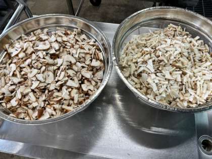 たっぷりのきのこを使いましたが、じっくり炒めるとかさが減って食べやすくなりました。きのこが苦手…という人も、からあげと一緒に頑張って食べていましたね。