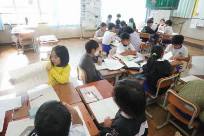 国語の「三年とうげ」では、自分たちで選んだ民話を紹介し合いました。お話のあらすじだけでなく、面白いと思った場面を引用して書くことができました。