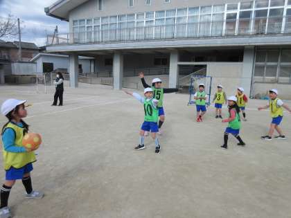 パスゲームの学習に入りました。2学期にもやったので、どうすればゴールできるのかコツを理解したうえで動けていました。失敗しても「大丈夫だよ!」という優しい声かけの中、楽しく取り組んでいました。