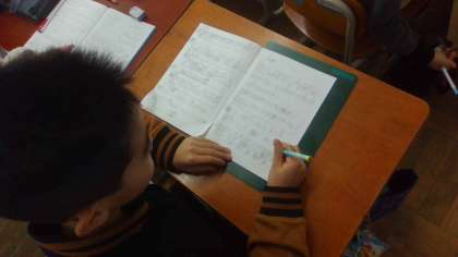 算数では「小数」の学習が始まり、今日は小数のたし算の仕方について考えました。これまでに学習したことを生かして、「小数は分数に直せるから…」「リットルますや数直の図に表せばできそう」「筆算でできないかな」と一人一人が見通しをもって学習することができました。ノートを書く量もずいぶんと増え、友だちの考えを積極的に書くなど成長を感じられます。