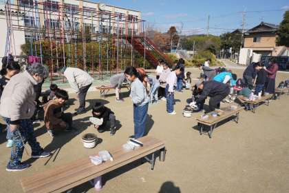 広沢社会福祉協議会の方にお世話になり、七輪を使って、お餅を焼きました。マッチを使って火おこしから始まり、うちわであおいで火をおこしました。炭に火がついたら待ちに待ったお餅焼きです。こんがり焼けたお餅を、砂糖醤油で味付けをして大きなお口で頬張り、美味しくいただきました。普段は経験できない、貴重な体験ができました!