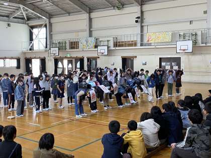 各学年から6年生に向けてメッセージや歌、ダンスなどを送りました。今回は、6年生にけん玉やビー玉つかみ、大縄の挑戦をしたり、一緒にバルーンをしたりと大変盛り上がりました。