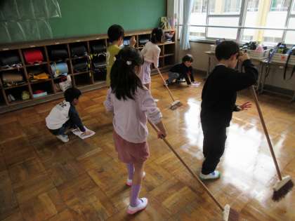 毎朝のつま先立ちや、毎日のそうじを一生懸命頑張っています。そうじは1年生の時とは違う場所をするグループもありますが、どの掃除の場所でも、友達と協力して進んで掃除をしていて素敵です。