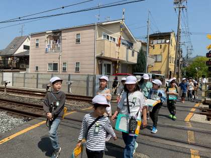 2回目の校区探検では、広沢小校区の南・西の方をまわりました。有栖川では、鯉やスッポン、様々な野鳥が見られ、子どもたちも興味深く探検していました。また「川の流れは、西の方から東に向かって流れている!」と学習したことを活かして考えている場面も見られました。