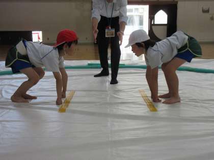 今週は相撲の学習をしています。勝っても負けても楽しく学習をしています。相手を土俵から出したり、倒したり、決着がつくまでなかなかの接戦ですが、あきらめず頑張っています。