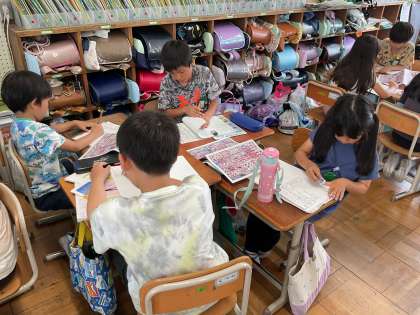 今日の社会では、スーパーマーケットの広告のちらしを見て工夫を探しました。「値段が目立つように書かれている!」「種類ごとに商品が載っている」「お肉や野菜などは、どこから来た商品か分かるようになっている」などグループで発見することができました。
