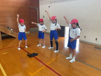 音楽に合わせて、体を大きく動かしたり、笑顔いっぱいで踊ったり、班ごとに工夫をこらしたり…どの子も楽しそうに体を動かしています!