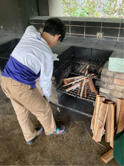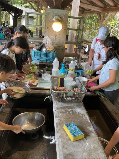最後の野外炊事は豚汁とご飯です。野外炊事も2回目なので、手慣れてスムーズに進みます。