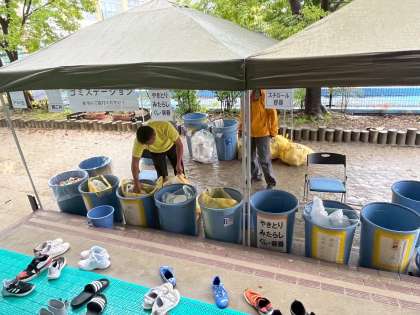 また、体育館前にはゴミステーションを設置し、小学生を含め、参加された皆様が協力して分別に取り組むことができました。