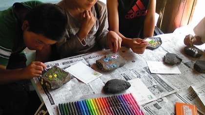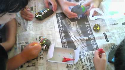 礒で拾った石にペイントしています。思い出のつまった記念になることでしょう。