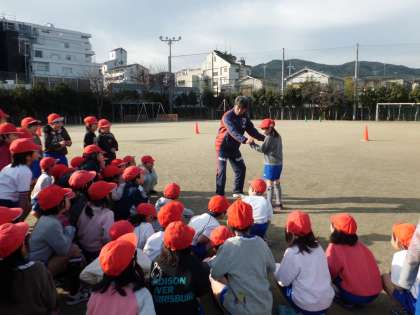 2月7日(金)の1・2校時に,「サンガつながり隊」の授業が行われました。京都サンガF.C.から池上コーチに来ていただきました。サッカーの技術向上のみならず,体を動かす楽しさや仲間の大切さを感じ,問題解決能力,コミュニケーション能力を身につけることを目的とするという趣旨の通りの内容でした。