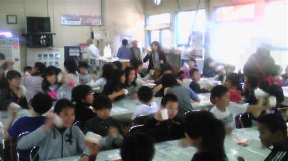 生クリームと牛乳を入れた容器を,子供たちは5分間一心不乱に振っています。