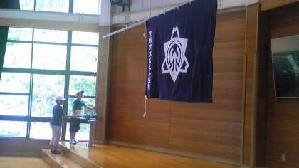昼食のあとに入所式を行いました。校歌を歌いながら校旗を掲げました。その後所員の方から、挨拶や5分前行動の大切さを教わりました。