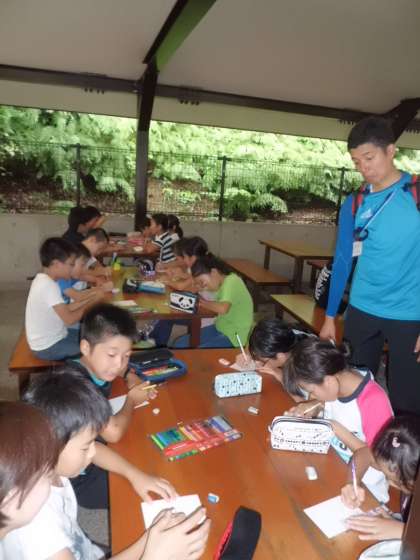 みさきの家からお家の方へ手紙を書いています。誰あてにするかを考え、あて名の書き方を確認して、「みさきの家」の近況報告を書いています。人生初のお手紙の人もいるのかも???