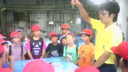 エサの種類は、アジ・エビ・イカ・アサリなど。実際にエサやりの体験をしました。美味しそうな大きな鯛が勢いよくエサに飛びついていました。