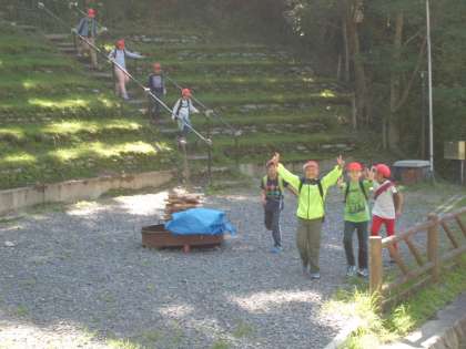 花背山の家の広い敷地内にあるポイント(問題が書いてある)をまわり、班で協力して話し合いながら活動しました。坂道が多い敷地をぐるぐる回るのはひと苦労ですが、そこは班の団結力の見せ所です。うまくできたでしょうか。明日の夜には。結果発表と表彰があります。