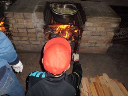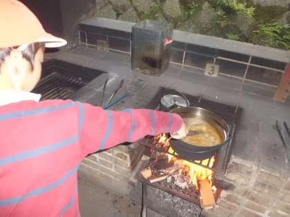 風が強くて、何が悲しいのか泣きながらの火起こしでした。しかし、一度点いた火は消えることなくカレーを作り上げました。途中、火が弱くなったり、強くなり過ぎたりで、少しあたふたしましたが、良い経験となりました。