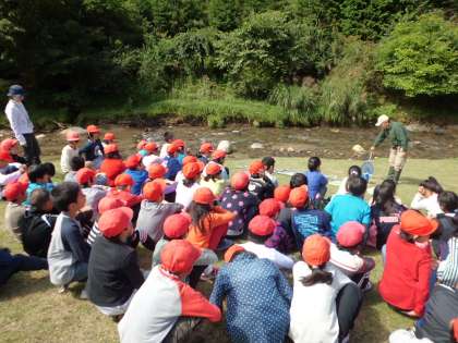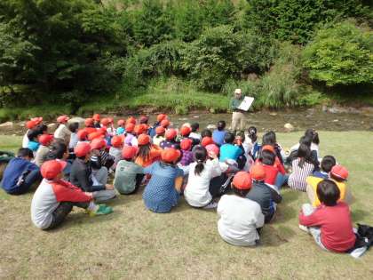 花背山の家先生から、川の生き物やその獲り方、そして注意することを教えていただきました。