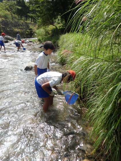 水温は15度でしたが、5分も水に足を入れてると、もう限界!!でも、さすがに子供たちは元気で、夢中になって生き物を探していました。