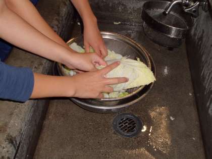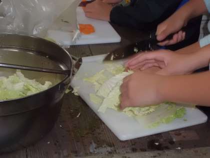 白菜は、包丁で切る?それとも、手で千切る?食感の違いが味に影響するかもしれませんねぇ。