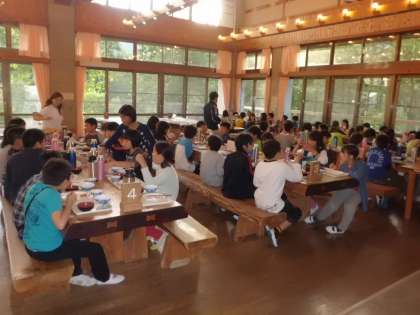 山登りをしておなかぺこぺこの子どもたち。