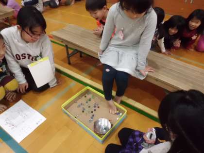 11月25日(水)中間休み時間に,低学年のビー玉つかみ大会を行いました。