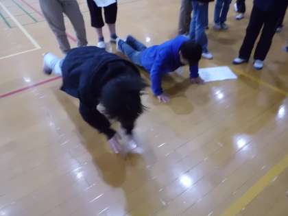2月10日(水)の中間休み,体育館で『寒い冬も元気に体を動かそうキャンペーン』を実施しました。今日は,高学年のチャレンジです。