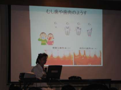 歯肉炎やむし歯の予防のために大切なことを映像で見せてもらい、噛むことの意義についても詳しく教えていただきました。