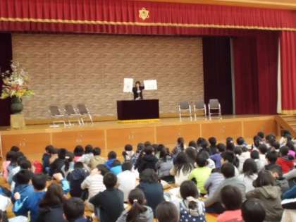 まずは着任式です。今年度広沢校に着任した教職員の紹介があり,児童代表の6年生2名がお迎えのあいさつをしました。広沢校には「素足・はだし教育」や「全学年の英語の取組」など,独自の取組があります。新着教職員には,早く広沢校の取組になじみ,子どもたちと一緒に明るく楽しい学校にするべく力を発揮してくれることを期待しています。