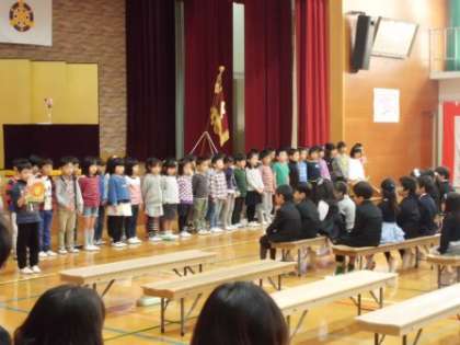入学式では校長先生やPTA会長様のお話の後,2年生からのお迎えの言葉がありました。2年生の発表に,1年生の子どもたちもこれから始まる小学校生活への期待に胸を膨らませてくれたことでしょう。