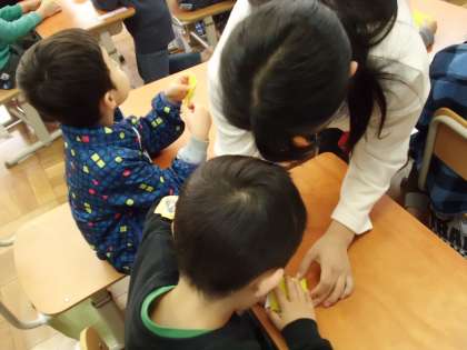6年生の説明がとても丁寧だったので,みんな上手に折ることができました。とっても優しいお兄さんお姉さんでした。