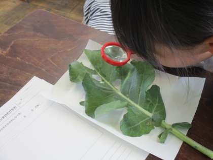 初めはこわごわ見ていた子ども達ですが,少しすると「かわいい!」と虫めがねを使ってじっくり観察していました。
