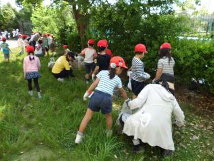 大変暑い日でしたが,ごみゼロの取組をして学校の中や校区がきれいになり,私自身,さわやかな気持ちになりました。子どもたちも同じ気持ちだったのでしょう,うれしそうないい「笑顔」でした。清掃活動は,身の回りを美しくすると同時に,人の「こころ」も美しくする大切な教育活動の1つであると思います。日々の清掃活動をこれからも大切にしていきたいと思います。