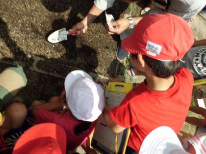 今回は,地域の「野菜の先生」に来ていただき,それぞれの野菜の特徴や育て方についてお話をしていただきました。害虫がついたり,水やりや追肥をする時期など見極めが難しいのですが,「定期的に子どもたちが世話をしているか見に来ますよ。」と心強いアドバイスをもらいました。