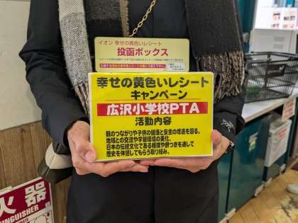 12月11日(木)にPTA厚生委員の方々が、お買い物終わりのお客様に呼びかけを行い、たくさんの黄色いレシートが集まりました。ありがとうございました。