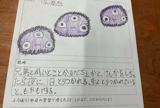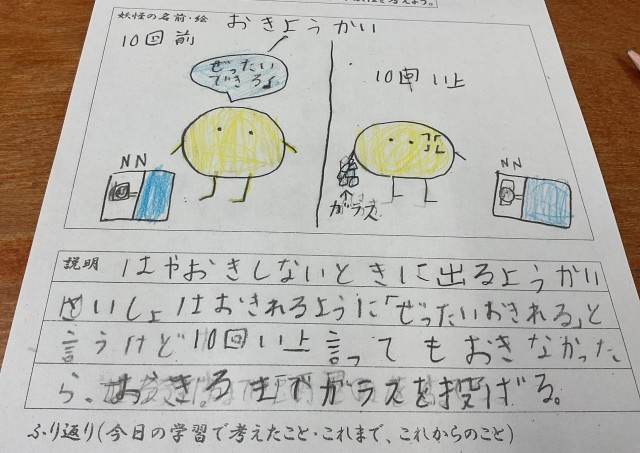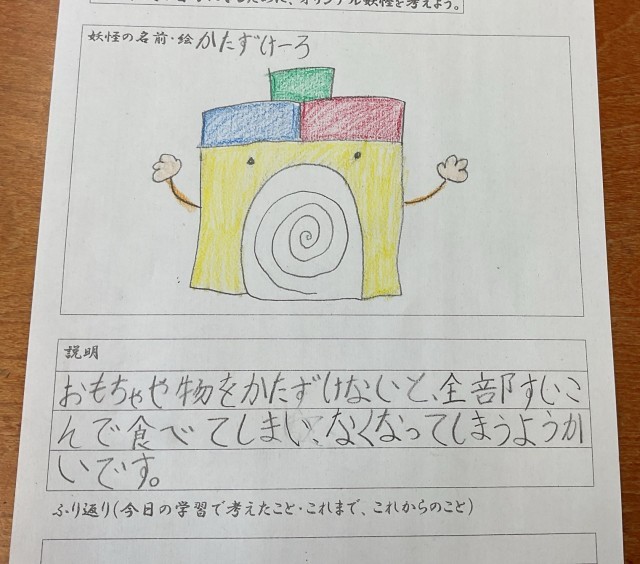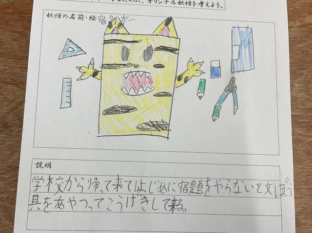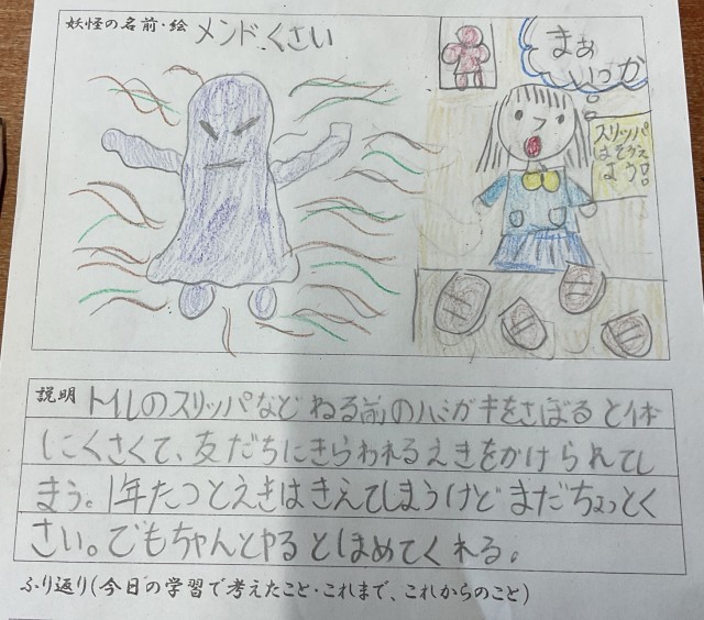 ユーモア溢れる妖怪を考えて、「こんな妖怪が現れないように頑張ろう!」と楽しみながら学習しました。
