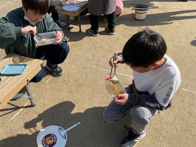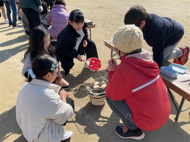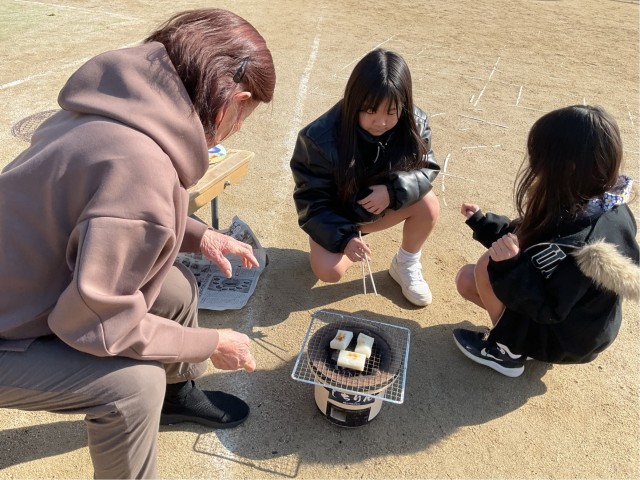 社会福祉協議会の方にご協力いただき、七輪でもちやきを体験させていただきました。