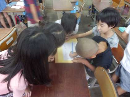 体育科でエンドボールの学習が始まりました。昨年度の低学年でのパスゲームから少しレベルアップです。単元の始めには,チームで準備・片づけの役割分担を決めたり,ルールを確認しながら作戦を立てたりしました。これから運動場でチームの仲間と協力しながら,技能を高めていきましょうね!