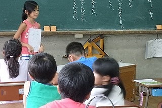 夏休みの自由課題の発表会をしました。研究記録や作り方,ゲームやオブジェの工作など,どれも子どもたちの自信作です。何日も前から,発表会を楽しみにしている子どもが多くいました。