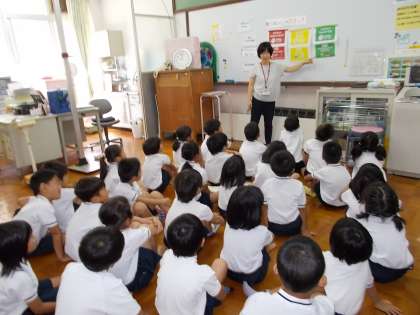 夏休み明けの子どもたちと会ったとき,どの子を見ても,「一回り大きく逞しくなったな。」と感じました。今日は1年生の計測日でした。計測の前には,養護教諭の阿部先生より,バランスよく食べる朝ごはんの大切さについて教えていただきました。9月の下旬からは,早寝・早起き朝ごはんキャンペーンにも取り組みます。子どもたちが今日教えていただいことをお家でもきっとお話すると思いますので,朝食について,一緒に考えていただけたら嬉しいです。
