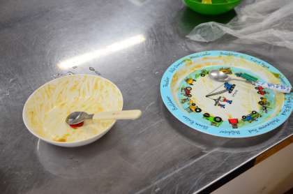 初めてかまどを使って,自分たちで作ったカレーに子どもたちは「うますぎる!」と大満足。40人前ほどのカレーをあっという間に完食してしまいました。お皿のきれいさからも子どもたちの満足度がうかがえます。