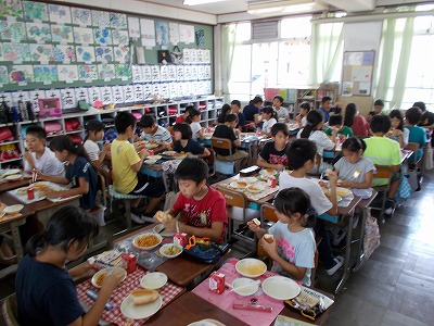 子どもたちは,スパゲティをパンにはさんで食べていたり,最後のお楽しみとしてとっておいている様子が見られました。