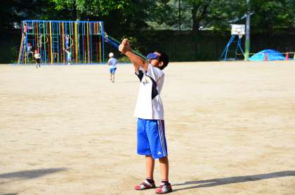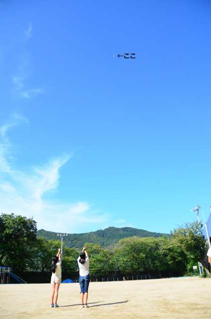 月と太陽の関係を調べるために,月の形と位置,太陽の位置を調べています。こぶしを使うことで高度を調べることもできます。