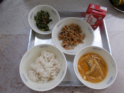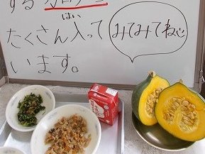 今日のみそ汁には,夏が旬の「かぼちゃ」を使っています。
