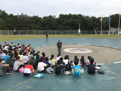 朝食、掃除の後は退所式です。みさきの家の職員のみなさんと、いっぱいの自然に感謝し、大きな声で挨拶をしてみさきの家を後にしました。