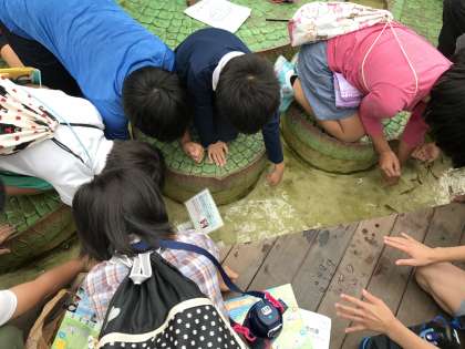 鳥羽水族館で動物とのふれあいを楽しみました。昼食をとり,予定通り13:50に出発します。全員元気です。