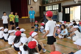鬼ごっこ大会が終わった後は,企画してくれた体育委員さんに感想を言いました。