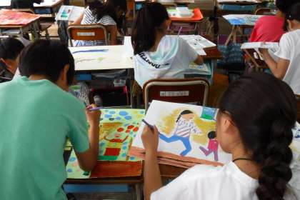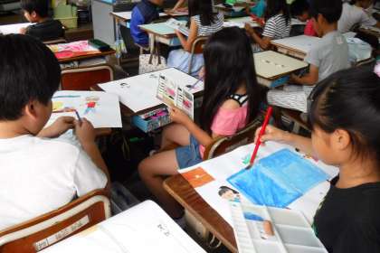 図工で「わすれられないあの時」をテーマに絵をかきました。様子や気持ちが伝わるように,絵の構図や色の塗り方を工夫して仕上げています。それぞれの気持ちを思い出しながら,一生懸命取り組むことができました。